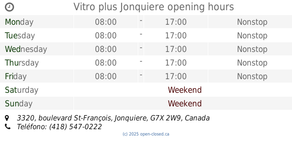 It is also possible to : Edit these OPENING HOURS of Store Vitro plus In Jonquiere, 3320, boulevard St-François,